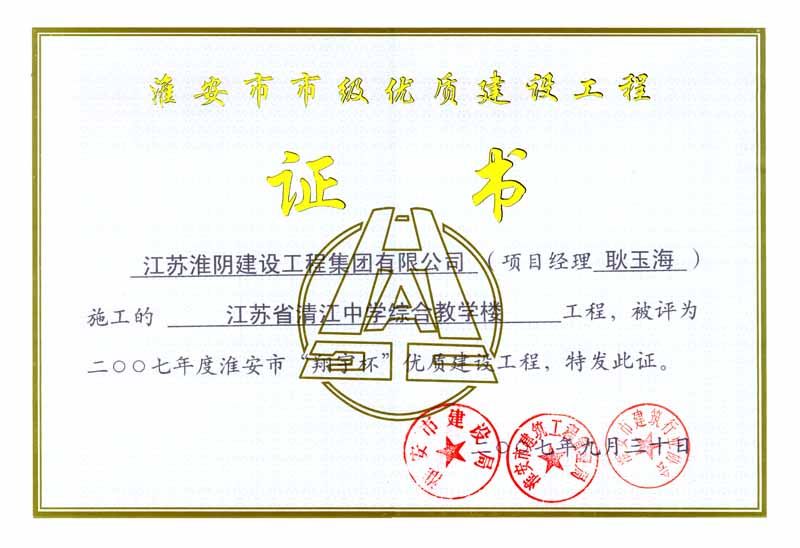 2007年市翔宇杯江苏省清江中学综合教学楼-耿玉海