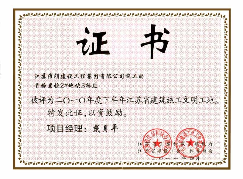 2011年省文明工地-香格里拉2#地块3标段(戴月平)