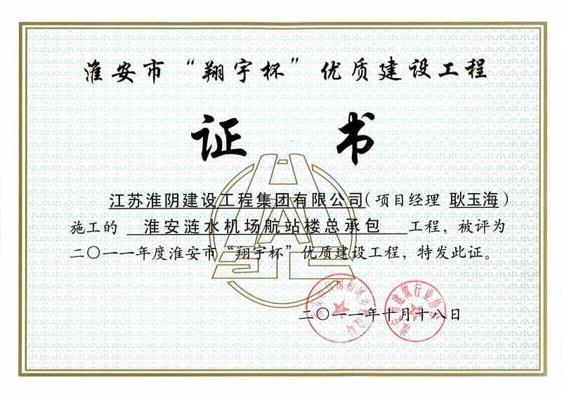 2011年市翔宇杯淮安涟水机场航站楼总承包-耿玉海