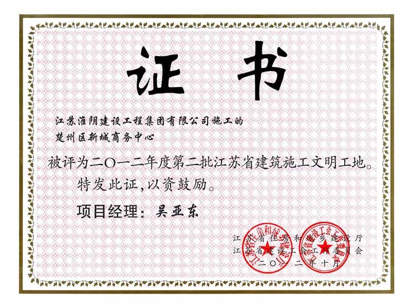 2012年省文明工地楚州区新城商务中心-2012省文明工地