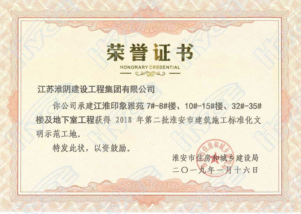 淮安市建筑施工标准化文明示范工地-江淮印象雅苑7#-8#、10#-15#、32#-35#楼及地下室