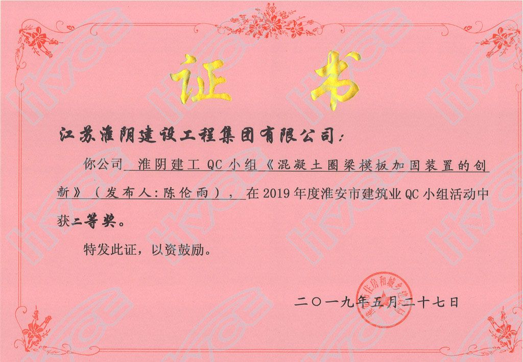 淮安市建筑业QC小组二等奖