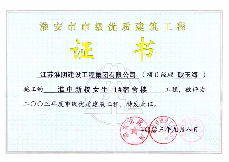 2003年市级优质工程淮中新校女生1#宿舍楼(耿玉海)