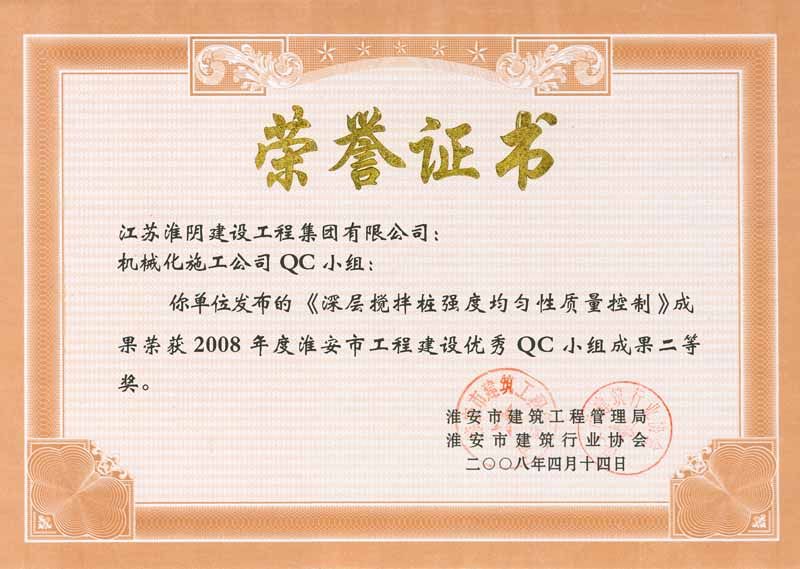 2008年市级QC二等奖(深层搅拌桩强度均匀性质量控制)