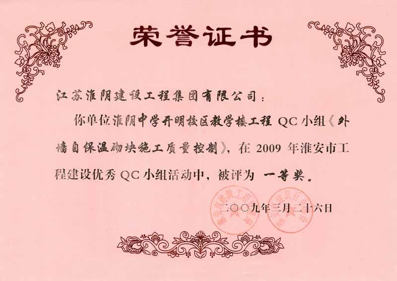 2009年市QC一等奖(淮阴中学开明校区教学楼-外墙自动保温砌块施工质量控制)